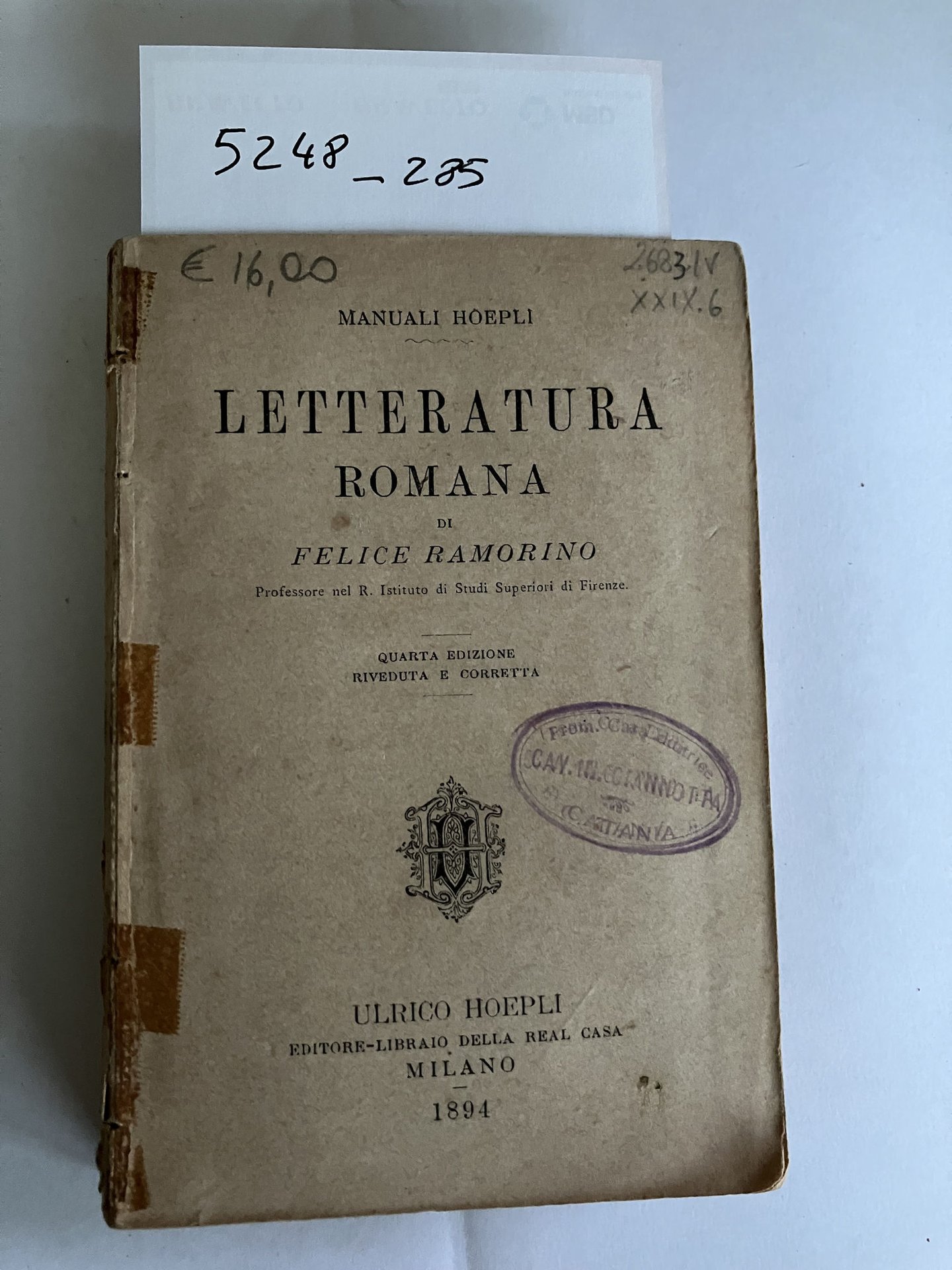 (Collana : Manuali Hoepli) Quarta edizione riveduta e corretta - DETTAGLIO DELLE CONDIZIONI : dorso e coperta mancanti - (1.XXIX.5).