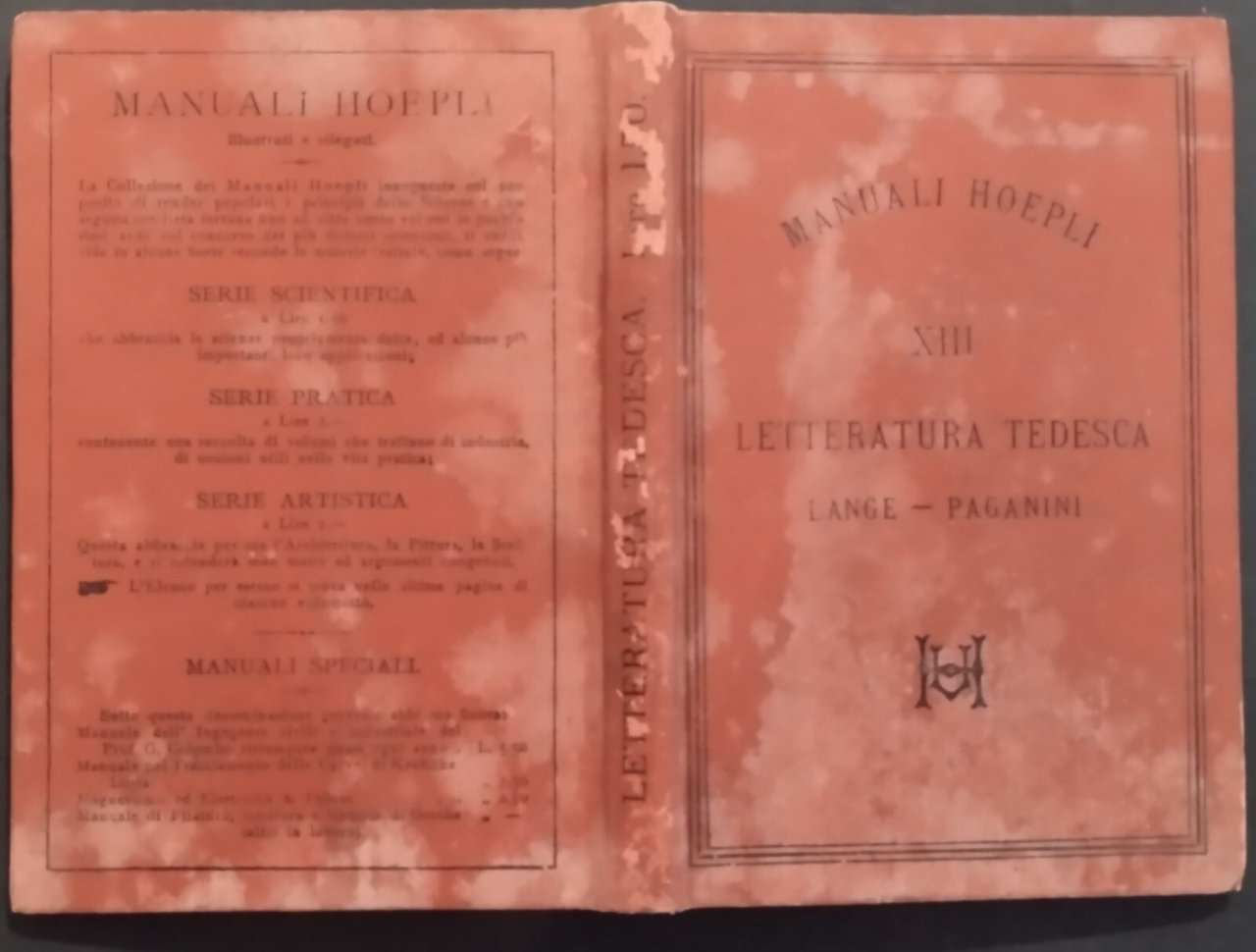 LETTERATURA TEDESCA di Otto Lange traduzione Paganini 1885 Hoepli Libro manuale