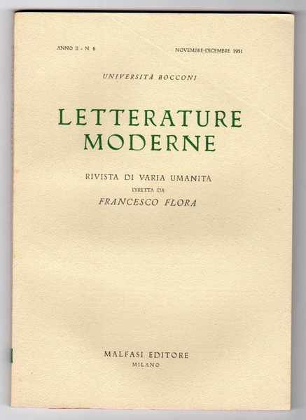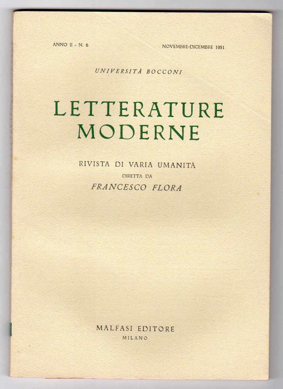 Letterature moderne Rivista di varia umanità diretta da Francesco Flora - Annata completa 1951 - Anno II - N. 1-2-3-4-5-6 (6 fascicoli bimestrali)