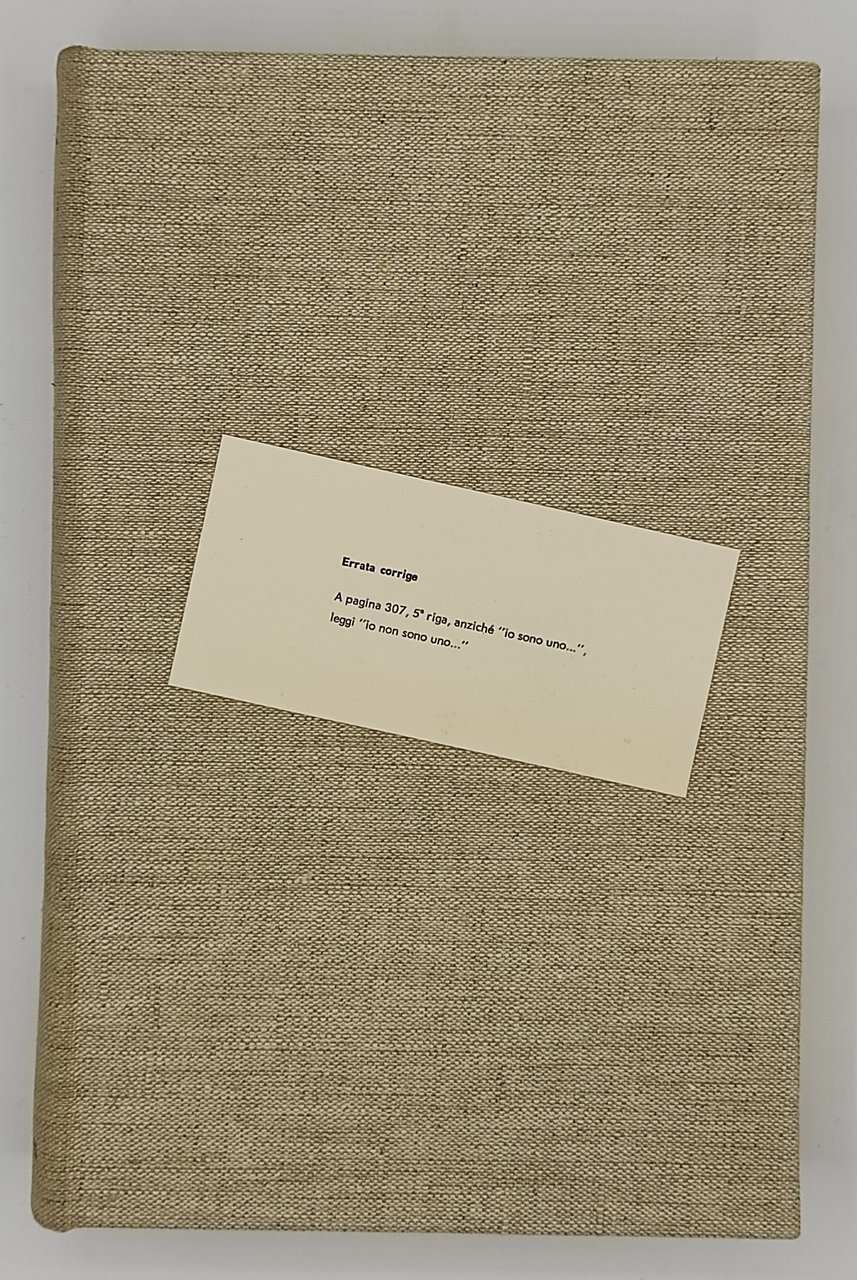 PRIMA EDIZIONE. Legatura in piena tela grigia. Foglietto di errata corrige incluso. Custodia in cartoncino illustrato mostra lievi tracce d'usura date dal tempo. I tagli mostrano una lievissima fioritura regolare (vedere foto).