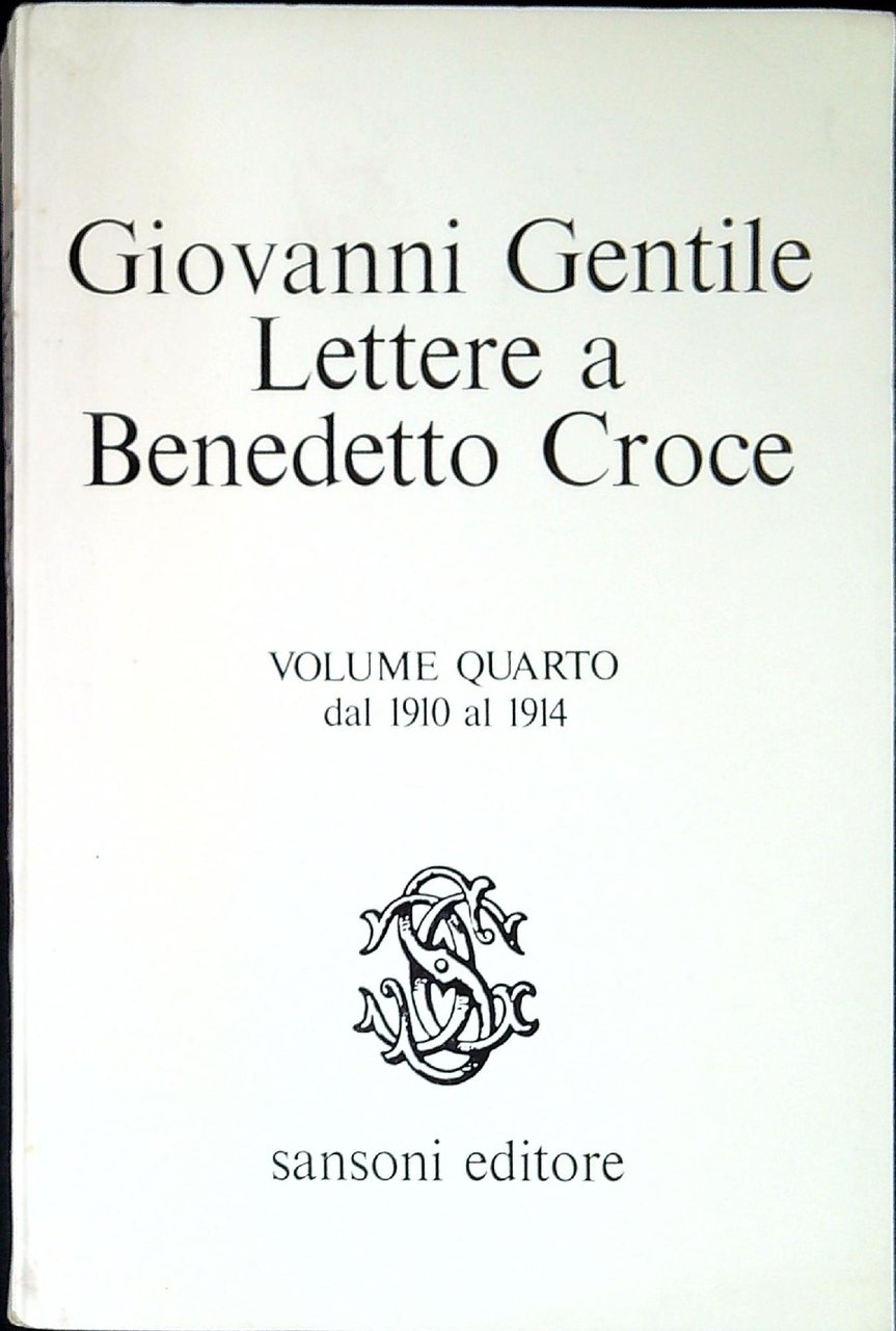 Giovanni Gentile Lettere a Benedetto Croce Quattro volumi opera completa. , Sansoni 1972, 21 Vol.1 dal 1896 al 1900 352 p.; Vol.2 dal 1901 al 1906 364 p.; Vol.3 dal 1907 al 1909 423 p.; Vol.4 dal 1910 al 1914 366 p. (51661)