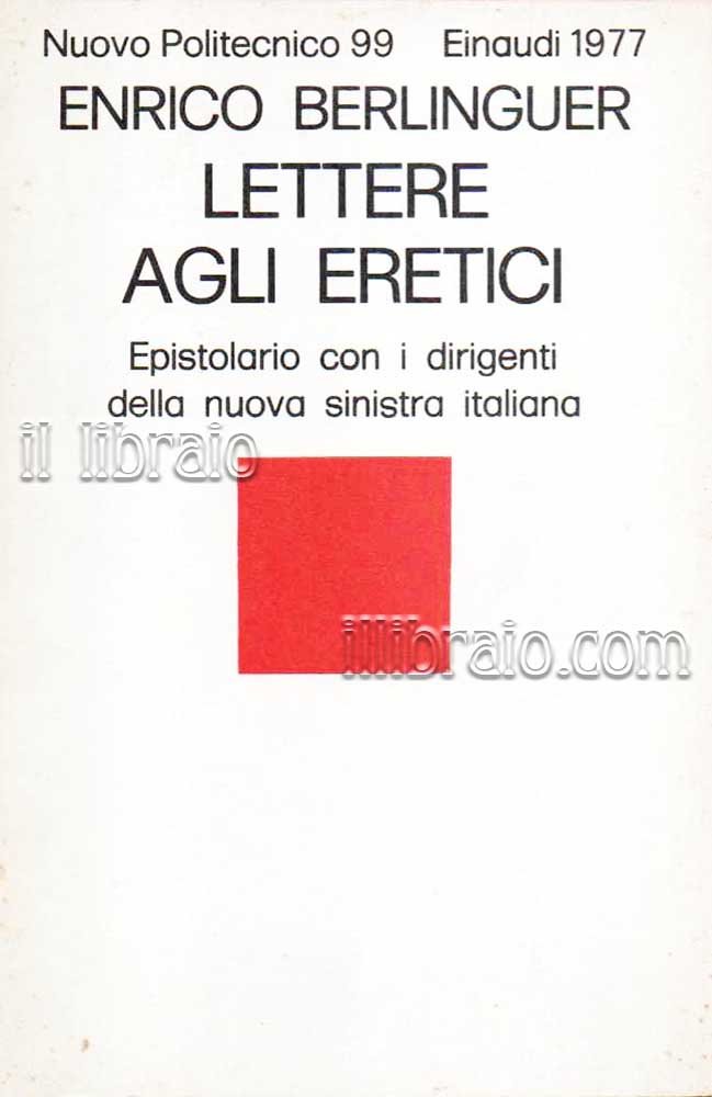in 16°; pp. XVI, 104; br.; coll. NP, # 99. Falso editoriale attribuito a E. Berlinguer. Edizione contraffatta, si presenta come # 99 della collana Nuovo Politecnico delle edizioni Einaudi ma edizione privata, scritto da Pierfranco Ghisleni. Il libro è una raccolta di lettere (ovviamente apocrife) indirizzate da Berlinguer a dirigenti, personalità, e gruppi organizzati, della nuova sinistra italiana: Marco Pannella, Goffredo Fofi, Adele Faccio, Angelo Pezzana, Andrea Valcarenghi, Toni Negri, X e "indiani metropolitani". Le missive propongono agli interlocutori una riflessione pubblica sulle modalità possibili di gestione del potere nella realtà italiana del presente. Le lettere sono precedute da una Presentazione di un altrettanto falso Giulio Einaudi. False sono persino le opere segnalate "di prossima pubblicazione" in fondo al volume (per es. Umberto Eco "Trattato del saper scrivere di nulla", Antonio -Toni- Negri "La tutela del posto di lavoro durante i sommovimenti sociali"). (cfr. Wikipedia / Pavese, I libri Einaudi)