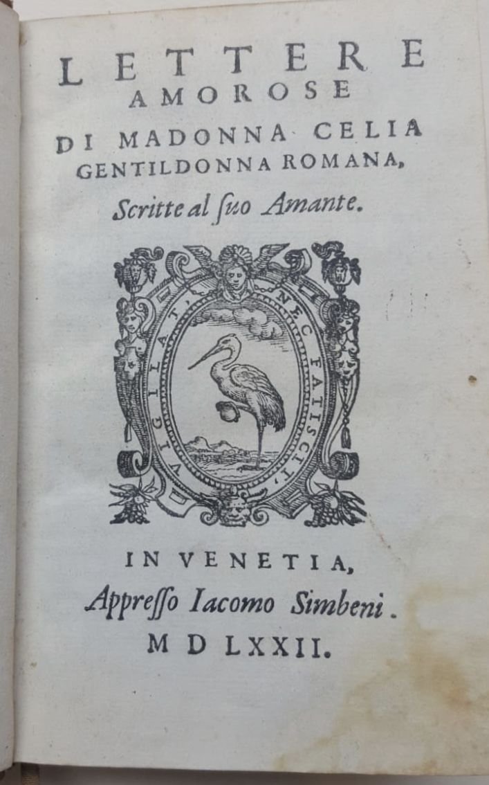 Lettere amorose di madonna Celia gentildonna romana scritte al suo amante. (Legato con:) Dialogo de' giuochi che nelle vegghie sanesi si usano di fare. Del Materiale Intronato.