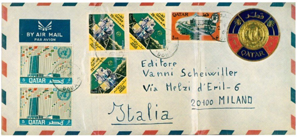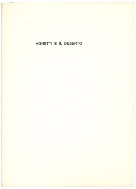 142x101 mm. Portfolio containing: 1) Title; 2) Gillo Dorfles, Agnetti e il deserto; 3) Lettere dal Qatar, 1969; 4) Ciclo stile 1, 1970 (with a “Fotoritratto 1972” of Vincenzo Agnetti by Ugo Mulas); 5) Tre villaggi, 1977; 6) Photo-graffie, 1980-1981; 7) Nota dell'editore and colophon. Copy no. 262 of 300. Vanni Scheiwiller and Giorgio Lucini, eds. First edition.