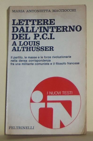 [Politica- Partito comunista italiano filosofia](cm. 18) brossura editoriale , -pp.363. E' la raccolta epistolare delle lettere che L'Autrice, candidata del PCI all'elezioni del 1968, inviÚ a filosofo francese Althusser. Attraverso queste epistole emergono le azioni del partito, il rapporto con le masse ecc. ordianria brunitura ai tagli e tracce di polvere alla brossura , stampata su base bianca, peraltroin buone condizioni. [n14]