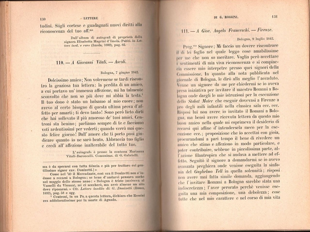 LETTERE DI G ROSSINI RACCOLTE E ANNOTATE di G. Mazzatinti - F. e G Manis. Barbera Editore, 1902 . VI, 363 pagine. Copertina coeva in tutta tela. Stato di conservazione: molto buono (pagine normalmente ingiallite, firma di appartenenza) Libro usato saggistica musica lirica compositore gioacchino