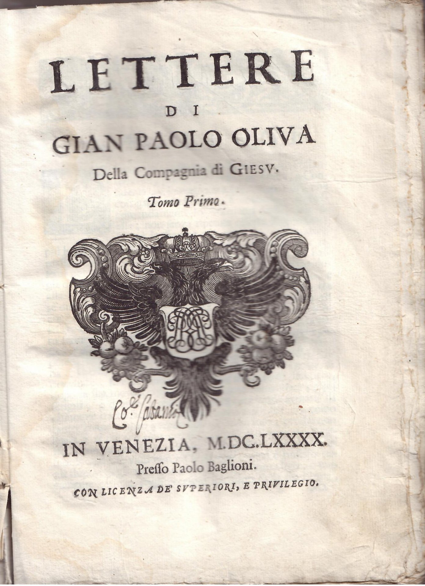 LETTERE DI GIAN PAOLO OLIVA DELLA COMPANIA DI GIESU