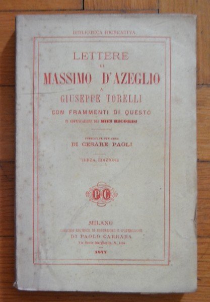 *Lettere di Massimo D'Azeglio a Giuseppe Torelli con frammenti di questo in continuazione dei Miei Ricordi. Pubblicate per cura di Cesare Paoli. Terza edizione.