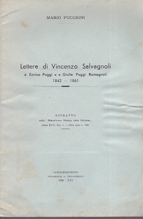 Lettere di Vincenzo Salvagnoli a Enrico Poggi e a Giulia Poggi Romagnoli. 1842 - 1861. Estratto dalla 'Miscellanea Storica della Valdelsa' (anno XLVI, fasc. 1 - Della serie n. 134)