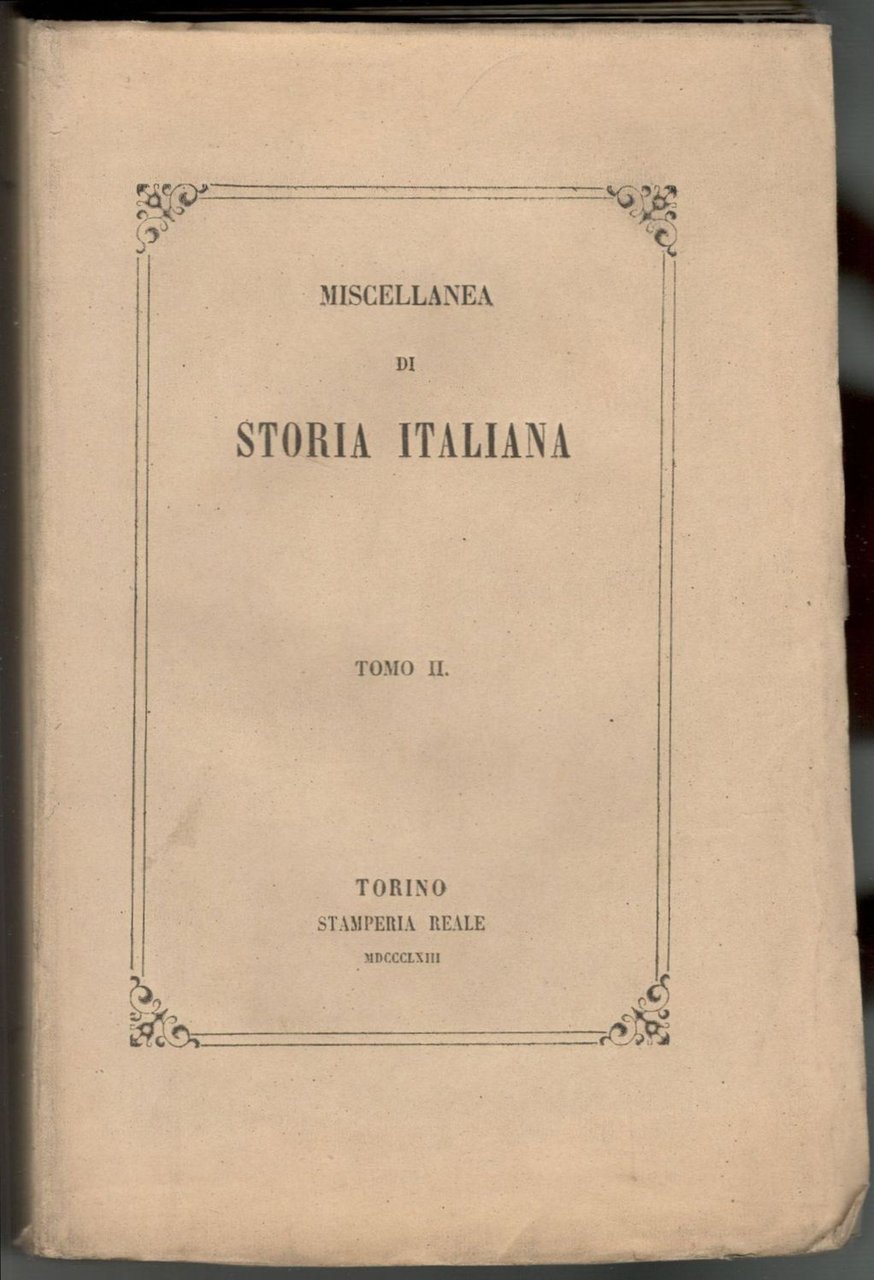 In 8°, pp. XIV, (2), 853, (1). Con una tavola fuori testo. Brossura editoriale a stampa. Minimi segni del tempo. Copia in ottimo stato, interamente a fogli chiusi. Contiene: Promis, Domenico e Müller, Giuseppe. Lettere ed orazioni latine di Girolamo Morone. Volume interamente dedicato a Girolamo Morone, gran cancelliere del Duca di Milano Francesco Sforza.