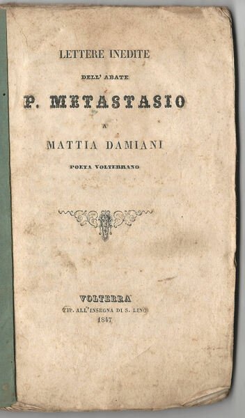 Lettere inedite dell'abate P. Metastasio a Mattia Damiani poeta volterrano.