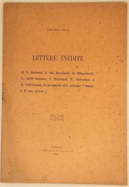 Lettere inedite di N. Barozzi, J. Ab. Bernardi, G. Bianchetti, F. Dall'Ongaro, I. Ferrazzi, P. Selvatico a G. Ghivizzani, in proposito del volume "Dante e il suo secolo".