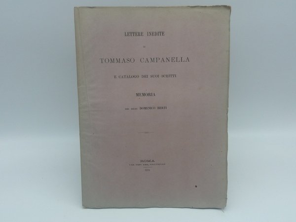 Lettere inedite di Tommaso Campanella e catalogo dei suoi scritti. Memoria