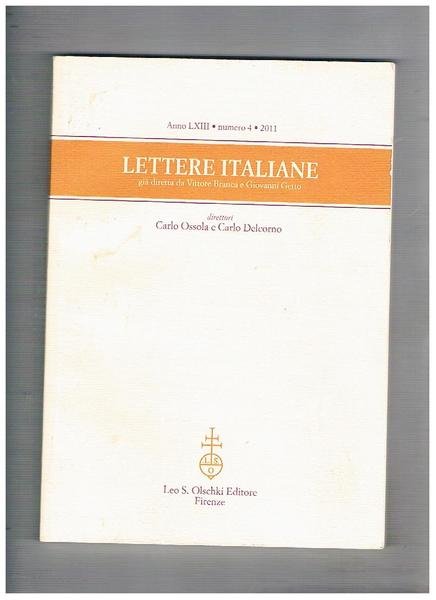 Lettere italiane anno 63° n° 4 2011. Petrarca al vaglio degli affetti. Su alcuni commeni primoseicenteschi; Andrea zanzotto commiato; per una riconsiderazione dei vesi giovanili di Andrea Zanzotto; Giovanni Giudici una lingua strana; ecc.