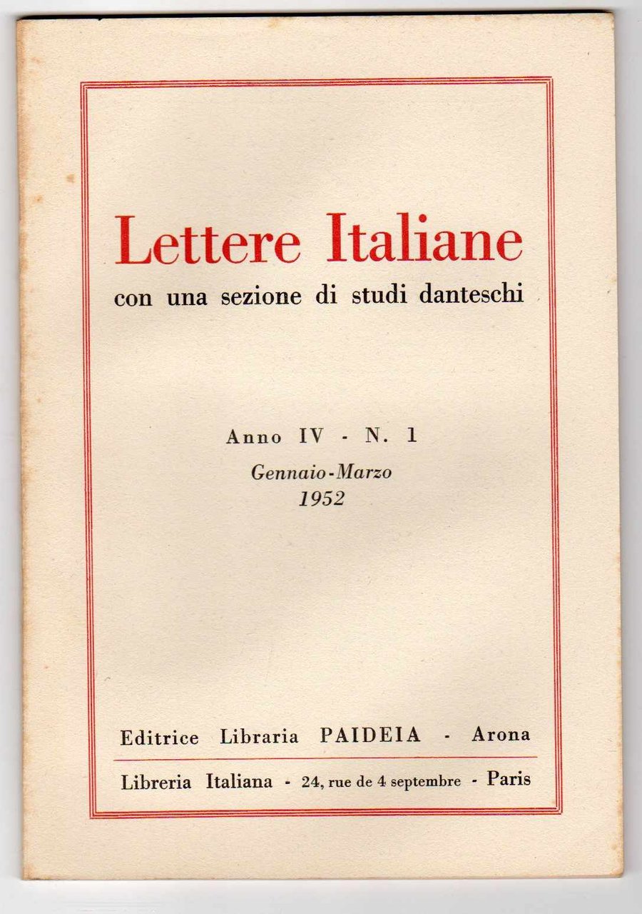 Lettere Italiane con una sezione di studi danteschi - Annata 1952 completa dei quattro fascicoli trimestrali n. 1,2,3 e 4