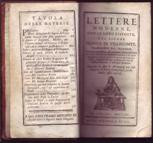 LETTERE MODERNE CON LE LORO RISPOSTE. Aggiunte in fine le avvertenze per ben comporre le lettere familiari, ed un indice assai copioso