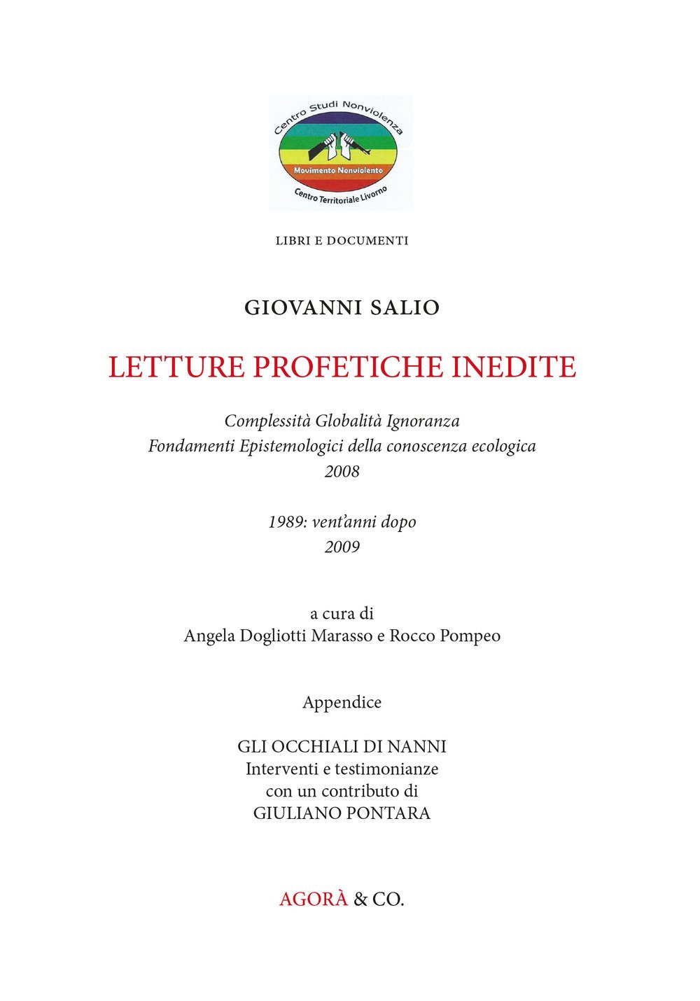 Lettere profetiche inedite. Complessità globalità ignoranza, fondamenti epistemologici della conoscenza ecologica, 2008. 1989: vent'anni dopo 2009
