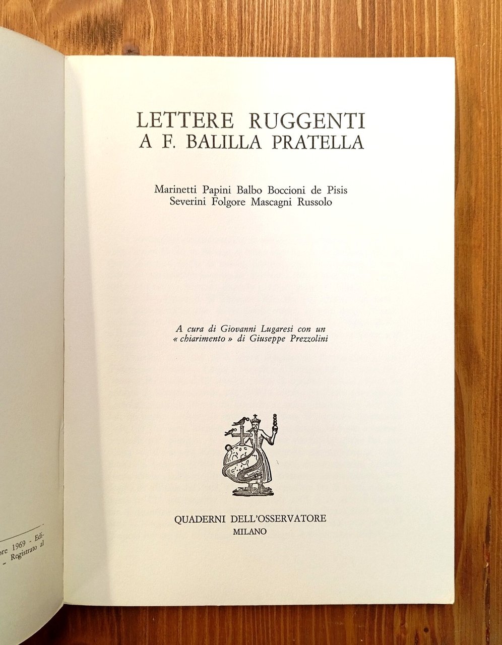Lettere ruggenti a F. Balilla Pratella. Marinetti, Papini, Balbo, Boccioni, de Pisis, Severini, Folgore, Mascagni, Russolo