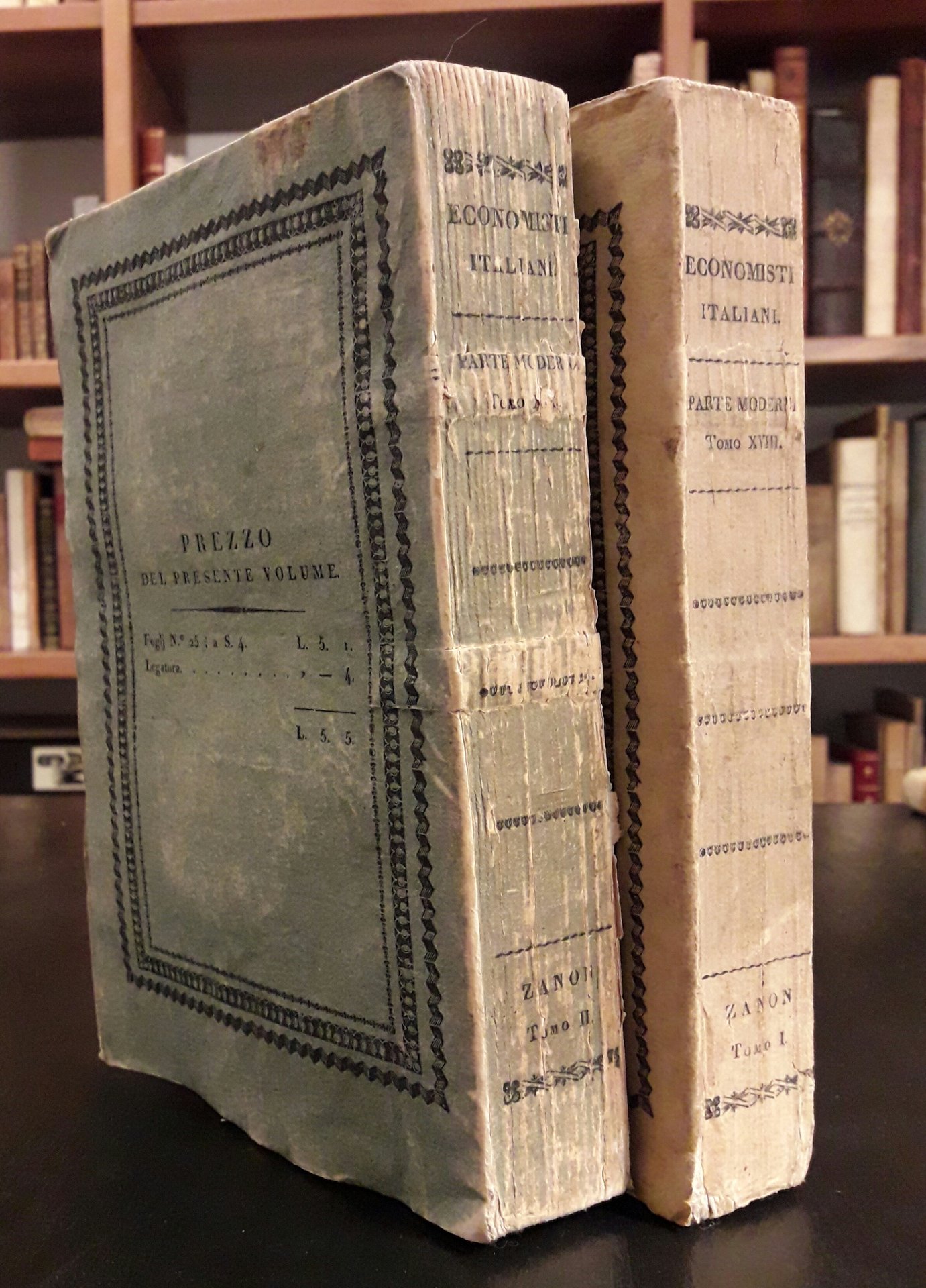 Sono i voll. XVIII e XIX della raccolta "Economisti classici italiani", parte moderna. 2 voll. in 8°, p. 366(2); 400(4). Intonsi. Ottimo esemplare. Brossura originale con minime mancanze ai dorsi.