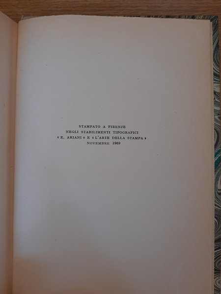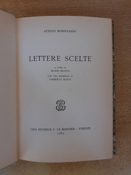 Rilegato in pelle e carta marmorizzata con titoli in oro. A cura di Mario Scotti con un apremessa di Umberto Bosco.