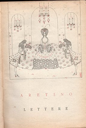 Saggio di Francesco De Sanctis "Pietro Aretino". Legatura in seta nera a fiori rosa, nome dell'autore a sbalzo in copertina, fregi di Duilio Cambellotti