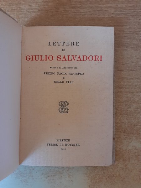 Rilegato in tela. Mantiene copertina originale. Lettere scelte e ordinate da Pietro Paolo Trompeo e Nello Vian.