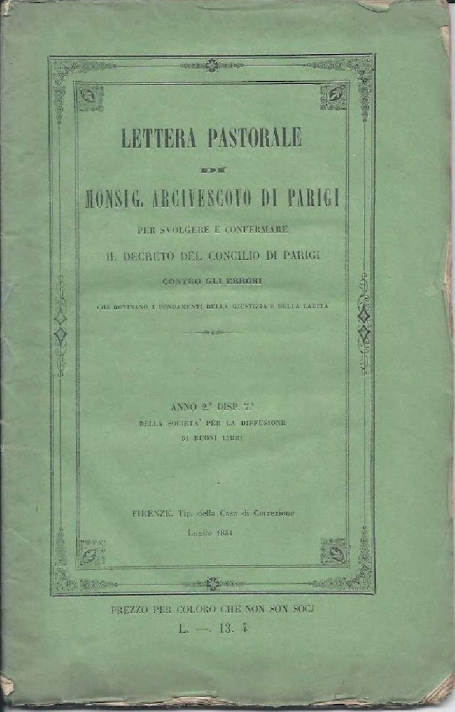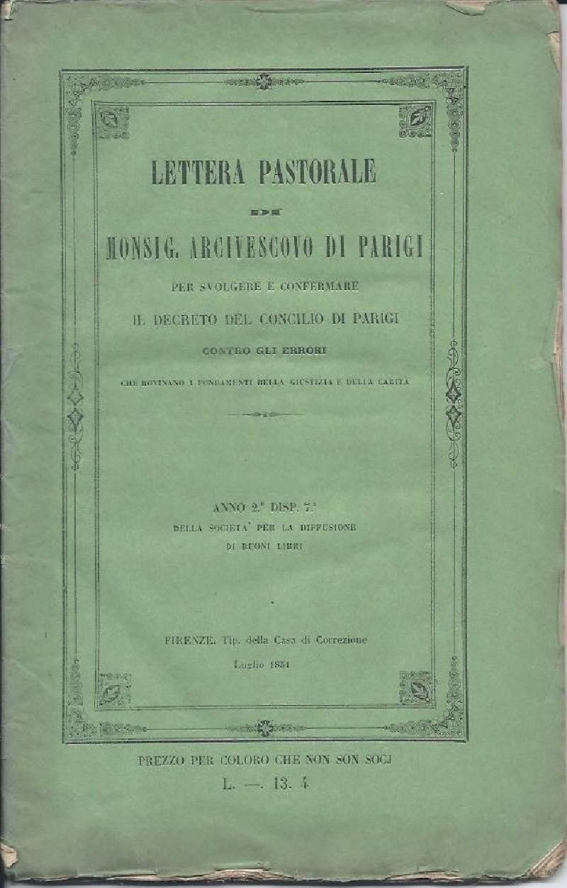 LETTRA PASTORALE DI MONSIG. ARCIVESCOVO DI PARIGI PER SVOLGERE E CONFERMARE IL DECRETO DEL CONCILIO DI PARIGI CONTRO GLI