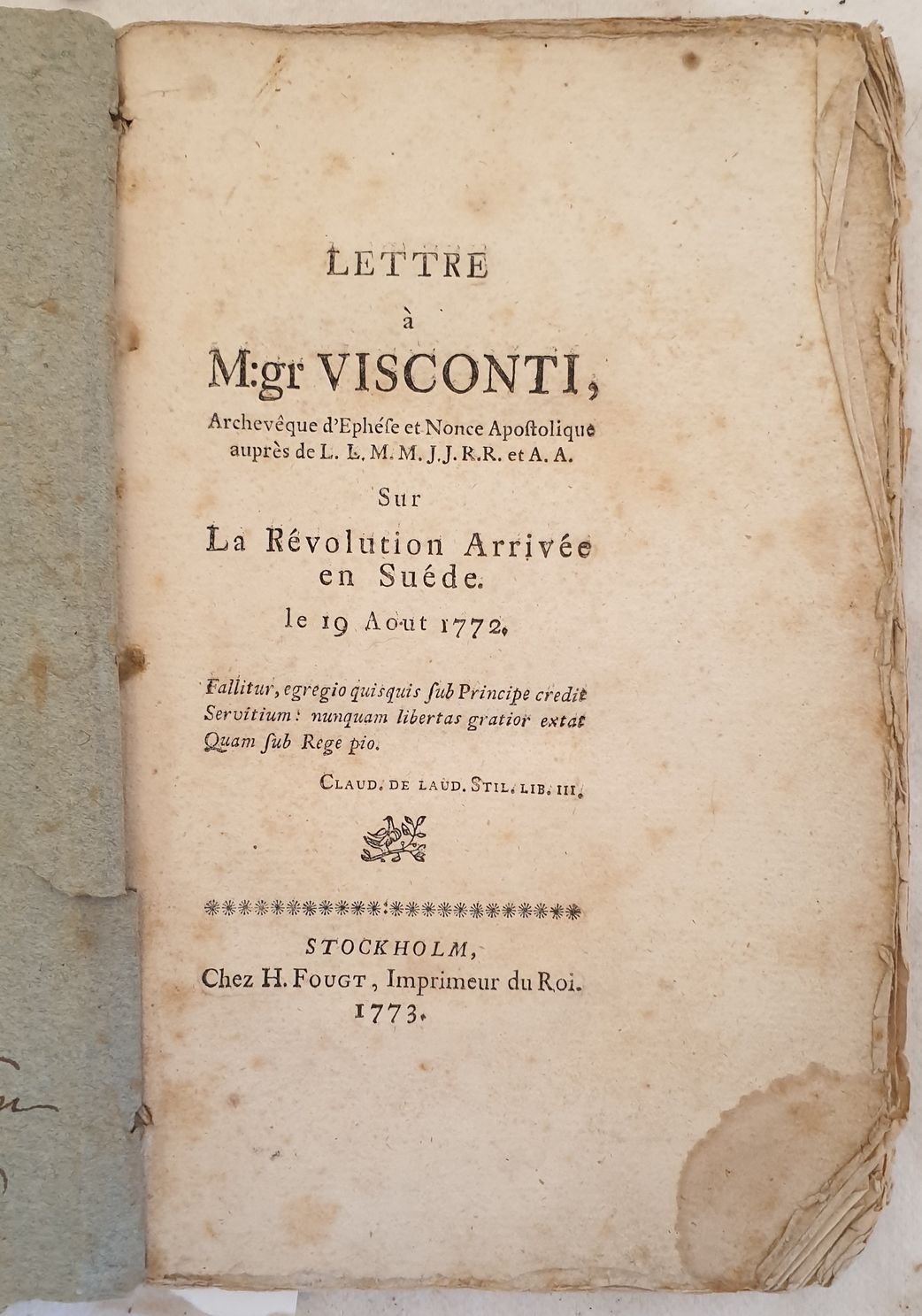 LETTRE A M. GR VISCONTI SUR LA REVOUTION ARRIVEE EN SUEDE LE 19 AOUT 1772