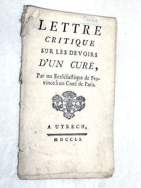 Lettre Critique sur les devoirs d'un curé, par un Ecclésiastique de Province à un Curé de Paris.