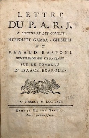 Lettre du P.A.R.J. a messieurs les Comtes Hyppolite Gamba-Ghiselli et Renaud Rasponi gentilshommes de Ravenne sur le tombeau d’Isaace Exarque