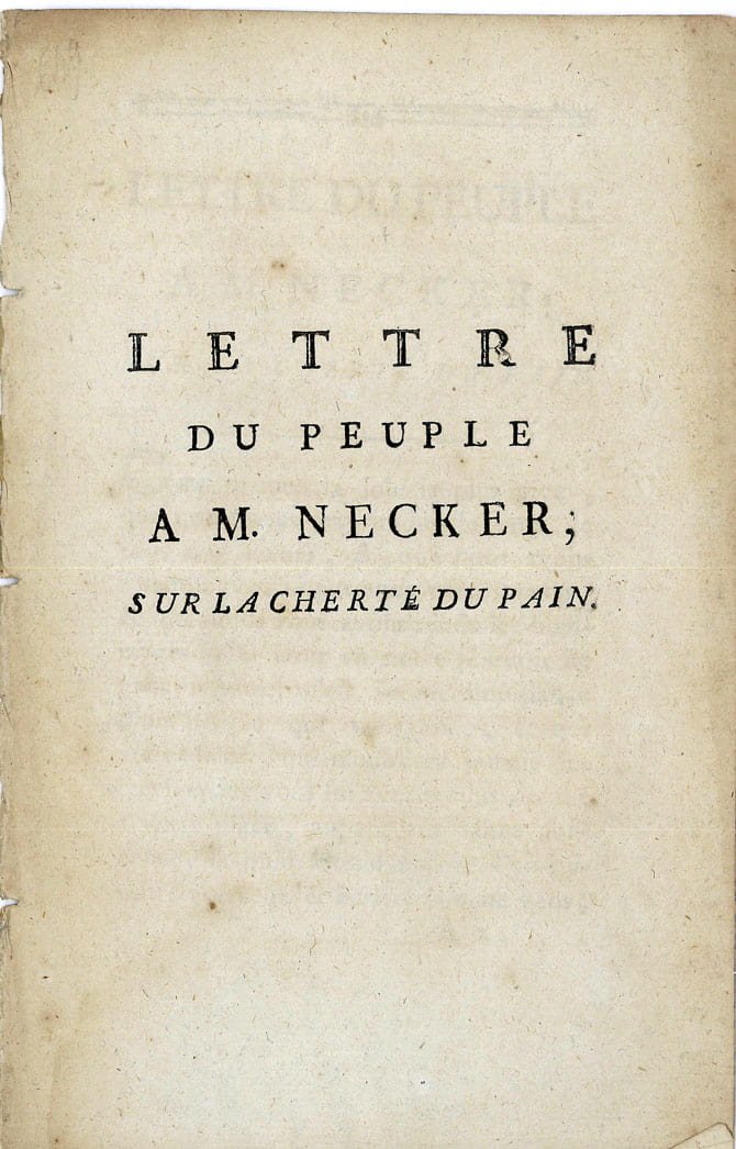 Lettre du Peuple à M. Necker; sur la cherté du pain.