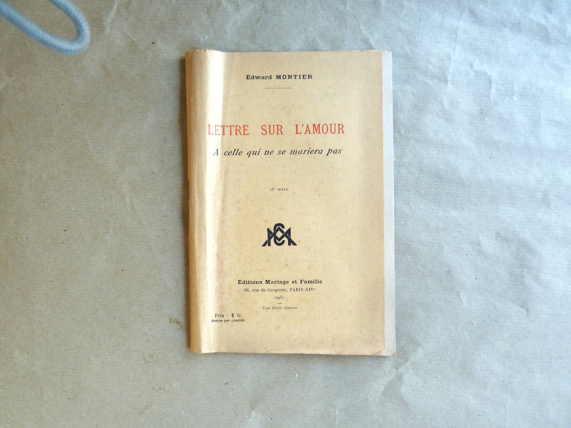 Lettre sur L'Amour. A celle qui ne se mariera pas.
