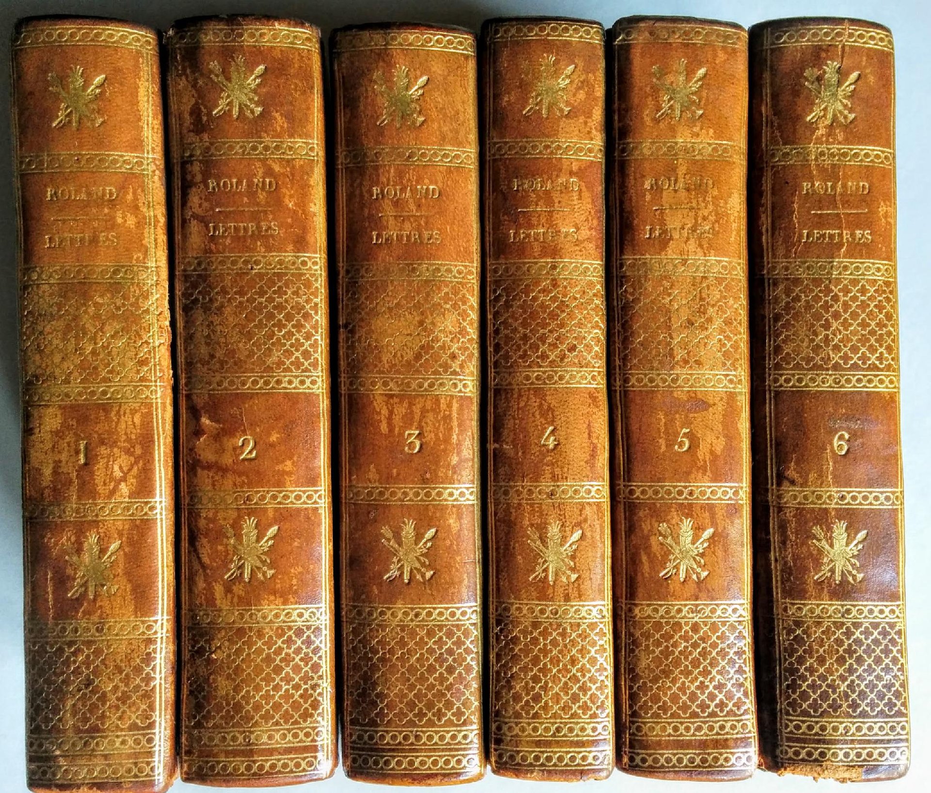 >6 vol. in-12, pp. (4), X, 454, (2); (6), 509, (3); (4), 536, (4); (4), 418, (2); 550; 515; attraente leg. del tempo m. pelle, dorsi riccament ornati con fregi e tit. oro. Seconda edizione (la prima era apparsa ad Amsterdam nel 1780) di queste 44 ampie lettere scritte negli anni 1776-78 dal Roland (erudito viaggiatore svedese e famoso giacobino, 1734-1793) a Madame Philippon, che diventerà sua moglie; trattano di letteratura, arte, storia, ma anche del carattere degli Italiani e dei loro usie costumi. «...quelquefois ses descriptions manquent d'exactitude, mais il traite avec profondeur tout ce qui concerne les antiquités, et avec assez de discernement et de goût les diverses parties des beaux-arts; mais ce qui distingue sur-tout sa relation, ce sont les recherches aux quelles il se livre sur les diverses branches de commerce et d'industrie propres à chaque contrée qu'il parcourt. C'est sur le commerce actif et passif de la Sicile, que R. fournit les renseignemens le plus étendus et le plus curieux...» (D'Ancona). Il IV vol. è quasi interamente dedicato a Napoli e dintorni e, tra le altre cose, offre l'estratto del famoso ''très piquant'' libro ''Naples'' di Angelo Goudard: ''Cet extrait est d'autant plus précieux que l'ouvrage original, condamné au feu et devenu extrêmement rare''. Ottimo esempl. Manca a Fossati-Bellani. Barbier II, 1267. D'Ancona p. 684. Fera-Morlicchio II, 1198.