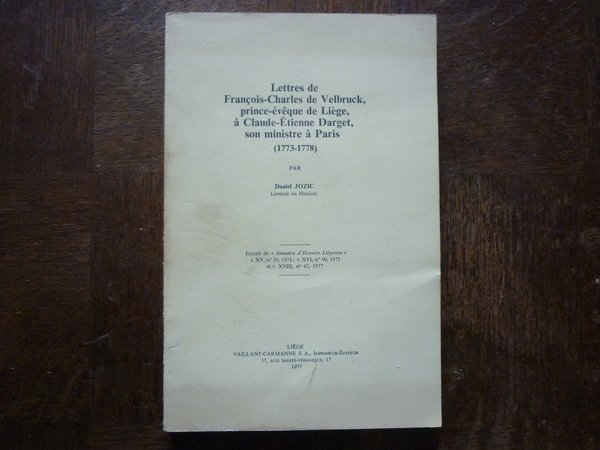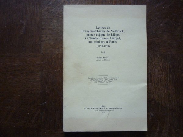 Lettres de François-Charles de Velbruck, prince-évêque de Liège, à Claude-Etienne Darget, son ministre à Paris (1773-1778
