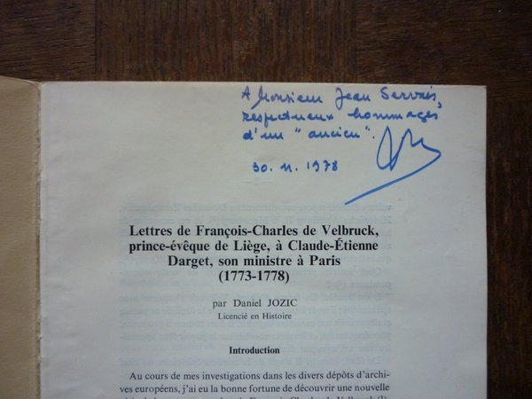 430 pp., envoi de l'auteur à Jean SERVAIS, directeur de "La Vie Wallonne" - revue tant appréciée. On joint deux lettres autographes signées au même