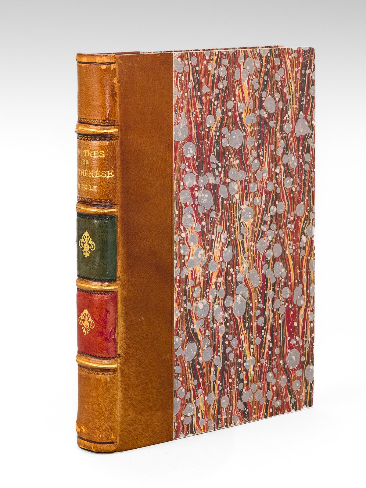 Et nouvellement recueillies par les soins du tres-Reverend Père Général des Carmes Deschaussez de la Congregation d'Espagne, Traduites d'Espagnol en François par M. François Pelicot, Prestre, Bachelier en Theologie en l'Université de Salamanque, 1 vol. in-4 reliure postérieure demi-basane marron, dos à 5 nerfs dorés, Chez Georges Iosse [ Josse ], Paris, 1660, 4 ff., 282 pp., 3 ff., 115 pp. Rare exemplaire de la première traduction française des lettres de Sainte Thérèse d'Avila, publiée en 1660 au format in-4, par François Pélicot. Cette édition contient notamment pour la première fois le texte espagnol d'une lettre datée du 2 novembre 1568 à Dona Louise de la Cerda. Bon état (anciennes rouss. et mouill et petits accrocs en marges, dos très lég. frotté, très bon état par ailleurs). Brunet, V, 804