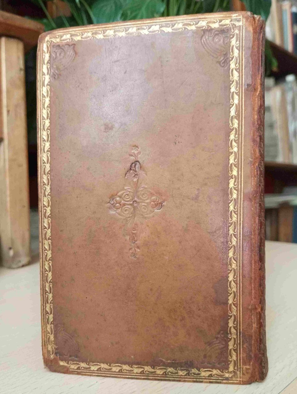 Volume in 12, preziosa legatura originale in pelle, impressa a secco con florion centrale e ai quattro angoli di ogni piatto, a loro volta racchiusi da una cornice floreale ed un doppio filetto in oro, altra cornice dorata a motivo geometrico al taglio ed al bordo interno dei piatti, titolo al tassello al dorso finemente inciso ai piccoli ferri e decorato in oro, tagli e sguardie marezzati, frontespizio con bella marca silografica, 196 pp., bianca finale. Gustosa, arguta, frizzante opera, nata probabilmente dalla penna di Crebillon, ma attribuita alla famosa cortigiana, la bellissima Anne Ninon de l'Enclos, chiamata anche, Ninon de Lenclos o Ninon de Lanclos (Parigi 1620 - 1705), passata alla storia non solo come donna ricca di fascino, ma di grande spirito, buona erudizione ed ottime capacit letterarie, oltre che custode di piccanti segreti. Davvero piacevole e particolare quest'opera fu ristampata varie volte, ma risulta del tutto introvabile in questa rarissima edizione. Ottimo lo stato di conservazione, splendida la legatura. Un raro gioiello.