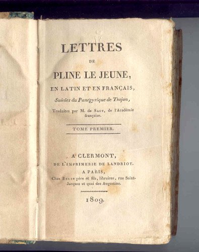 LETTRES DE PLINE LE JEUNE EN LATIN ET EN FRANCAIS. SUIVIES DU PANEGYRIQUE DE TRAJAN