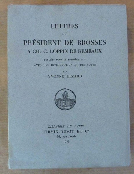 Lettres du Président De Brosses à CH.-C. Loppin De Gémeaux. Publiées pour la première fois avec une introduction et des notes.