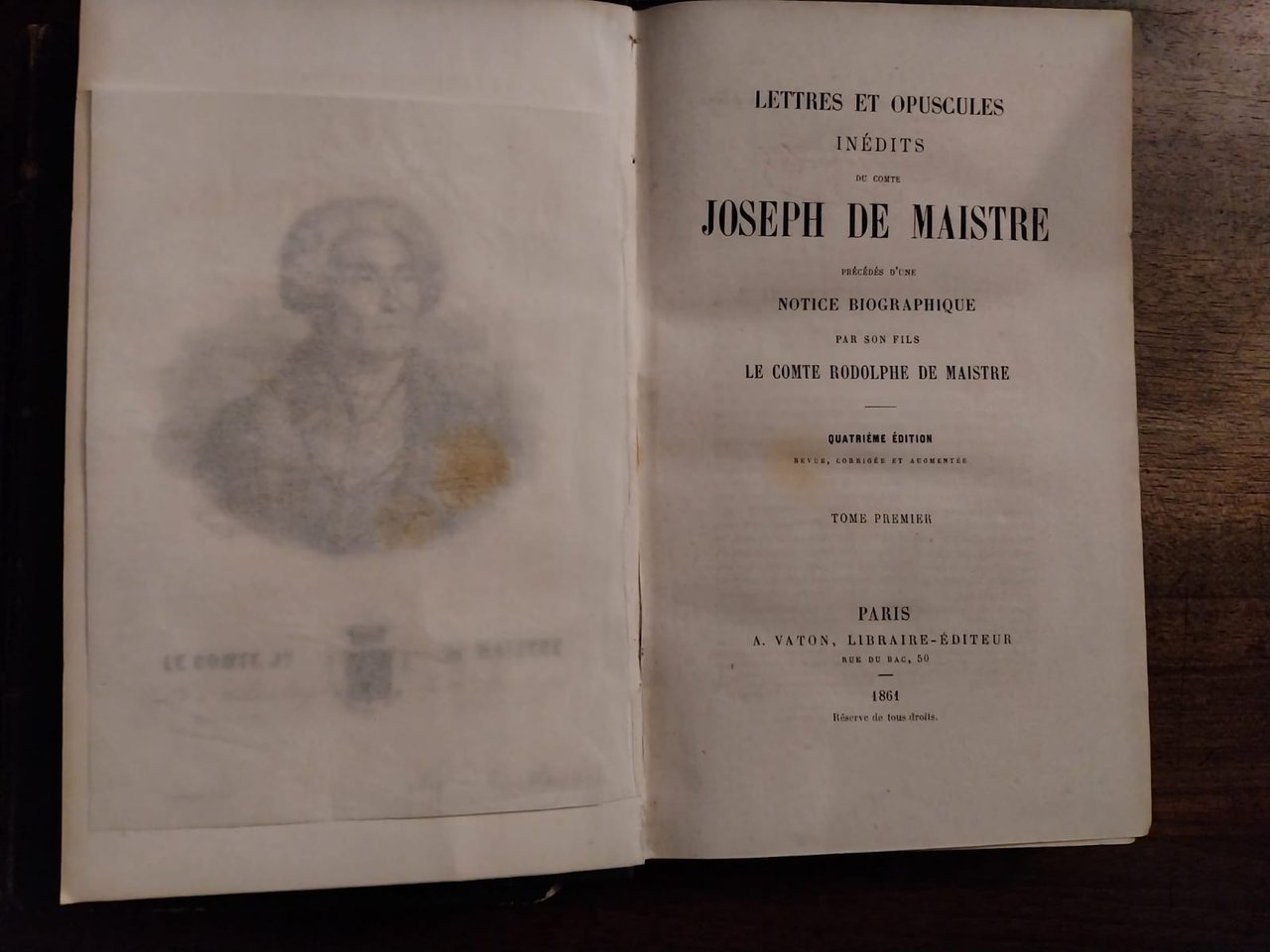 Lettres et opuscules inédits. Précédés d'une notice biographique par son fils le comte Rodolphe de Maistre. Quatrieme édition, revue, corigée et augmentée