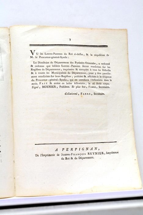 - (à la fin:) A Perpignan, de l'imprimerie de Jean-François, Reynier, s.d. (1790).