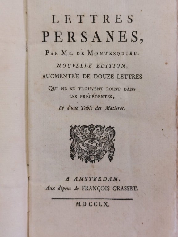 Lettres persanes. Nouvelle édition augmentée de douze lettres qui ne se trouvent point dans les précédentes et d'une table des matières.
