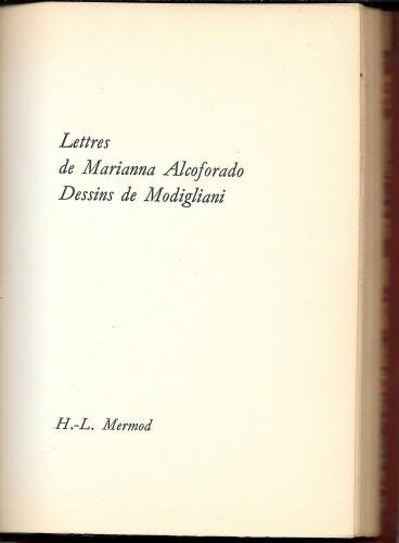 2^ ediz., in 16°, pp. 82, 6 nn., leg. coeva p/pelle rossa con tit. in oro al ds., sguardie marmor., conservata la bross. originale ill., carattere Garamond italico punto 18. Collana "Les Amoureuses", 4 lettere ill. da 4 disegni di Modigliani di cui 3 a doppia pag. 381/29