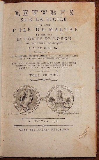 Lettres sur la Sicile et sur l’Île de Malthe. écrites en 1777 pour servir de supplément au voyage en Sicile et à Malthe de Monsieur Brydonne; ornées de la carte de l’Etna, de celle de la Sicile ancienne et moderne avec 27 estampes de ce qu’il y a de plus remarquable en Sicile