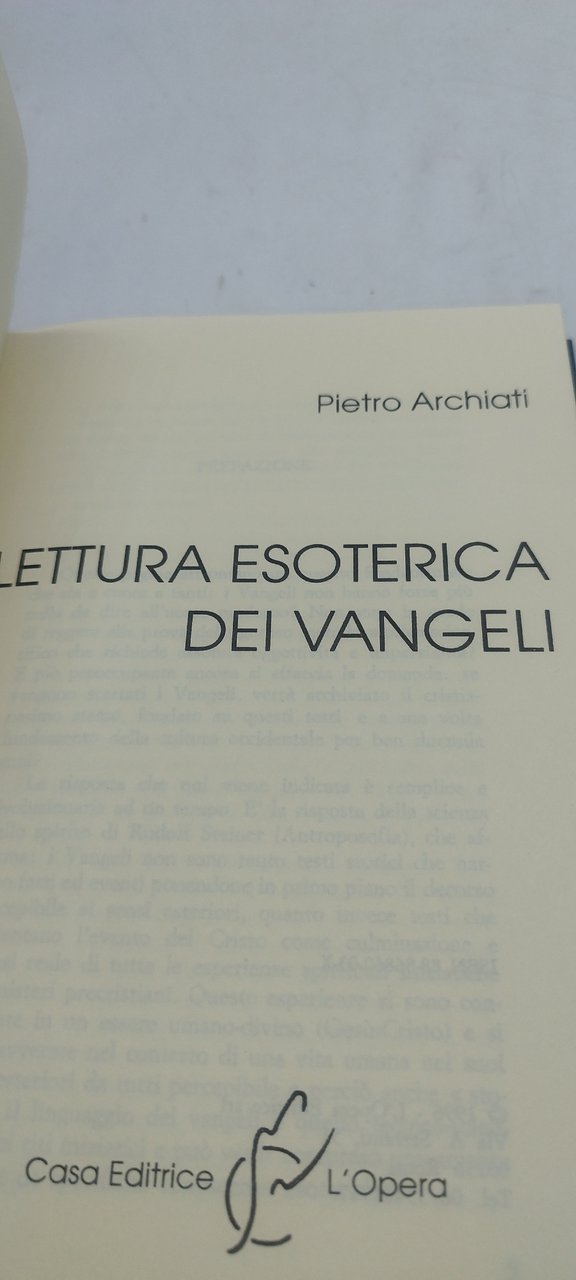 pietro archiati lettura esoterica dei vangeli. , casa editrice l'opera 1996 italiano, 207 °°