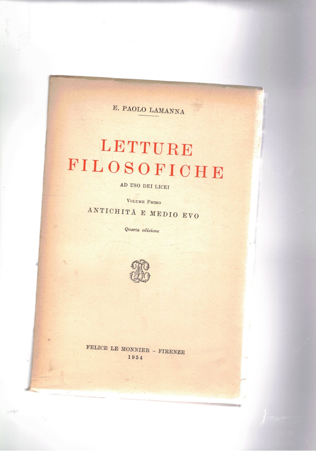 Letture filosofiche a uso dei licei. Vol. I° antichità e medio evo.