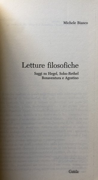 LETTURE FILOSOFICHE. SAGGI SU HEGEL, SOHN-RETHEL, BONAVENTURA E AGOSTINO