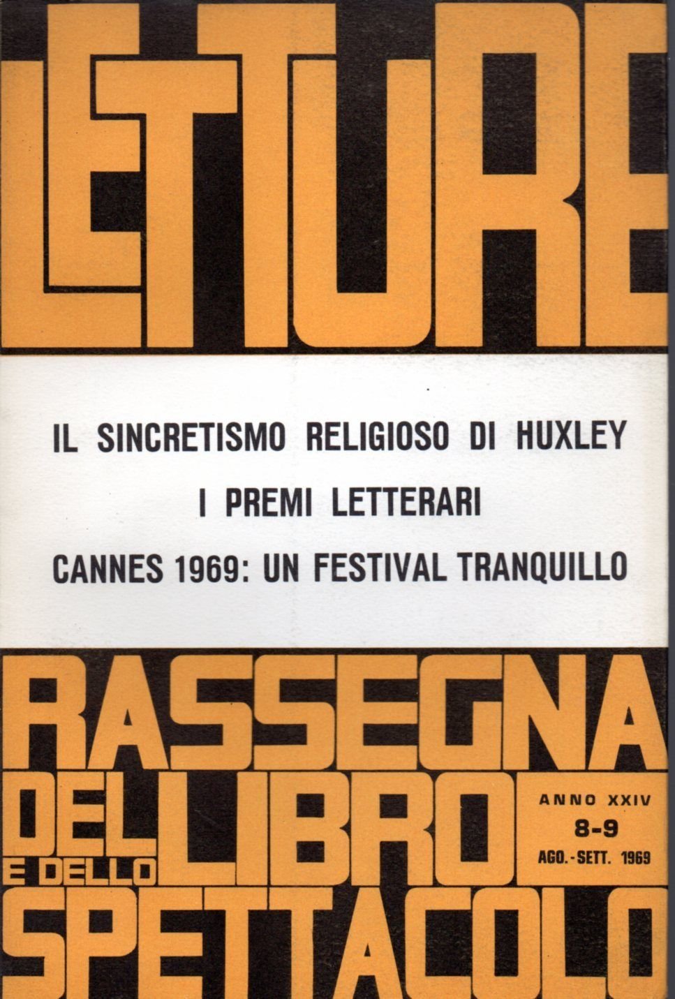 LETTURErassegna critica del libro e dello spettacoloANNO XXIV n^8-9 ago.-sett. 1969Tendenze d'avanguardia di giovani gruppi teatrali di Gottardo BlasichCannes 1969: molti film di Luigi BiniIl messaggio profetico di Dietrich Bonhoeffer di Mario CuminettiLalla Romano, Le parole tra noi leggereI premi letterari di Gabriele Casolari"L'Afrodite": esperienza e ascesi di Bacchelli di Gabriele Casolari in ottimo stato (gr.200)e84
