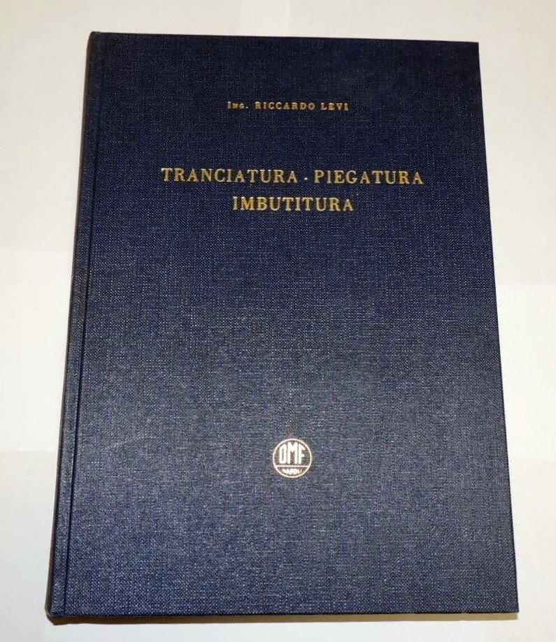 Riccardo Levi, Tranciatura, piegatura, imbutitura, Omf, Napoli 1963, pp. 189, ill. b.n., 15 tavv. f.t., con ill. b.n., tela ed. con titoli in oro al piatto e custodia in cartone rigido. Rara pubblicazione realizzata su iniziativa e a cura della Mecfond, Officine Meccaniche e Fonderie Napoletane S.p.A.