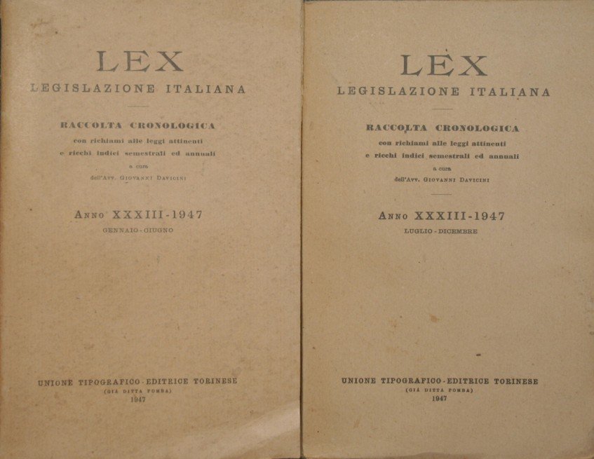 Lex. Legislazione italiana. Anno XXXIII, 1947